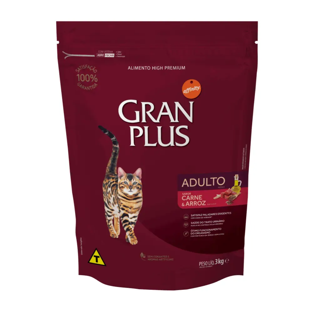 Gran Plus carne y arroz para gatos adultos es un alimento de alta calidad, que proporciona una experiencia irresistible para su gato mientras lo nutre con ingredientes finos y funcionales que le aportan grandes beneficios a su salud.