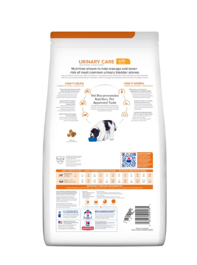 Los cálculos en la vejiga son colecciones de cristales minerales que se combinan en el tracto urinario. Pueden causar molestias y provocar problemas más graves que requieren el cuidado de un veterinario. Los nutricionistas y veterinarios de Hill's desarrollaron la nutrición clínica Prescription Diet c/d Multicare especialmente formulada para apoyar la salud urinaria de un perro y reducir el riesgo de cálculos de estruvita y oxalato de calcio. Este alimento seco tiene un irresistible sabor a pollo que encantará a los perros.