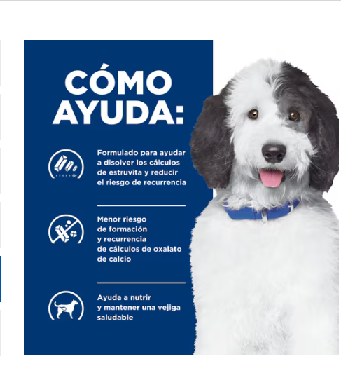 Formulado para ayudar a disolver los cálculos de estruvita y reducir el riesgo de recurrenciaReduce el riesgo de formación y recurrencia de cálculos de oxalato de calcioAyuda a nutrir y mantener una vejiga saludableS+OXSHIELD: Formulado para promover un ambiente urinario que reduce el riesgo de desarrollar estruvita & cristales de oxalato de calcioRecomendado para la alimentación de por vida de perros adultos