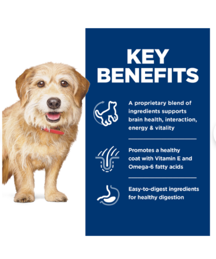 El alimento para perros Hill's® Science Diet® Youthful Vitality Small & Mini proporciona nutrición balanceada con precisión para combatir los efectos del envejecimiento en su perro Adulto de 7+ años.