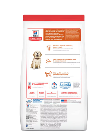El alimento seco Hill's® Science Diet® Large Breed Puppy está hecho especialmente con un nivel óptimo de calcio para el crecimiento controlado de huesos, una necesidad única en el desarrollo de cachorros de razas grandes. Deles el mejor comienzo en la vida para que puedan crecer a su máximo potencial.