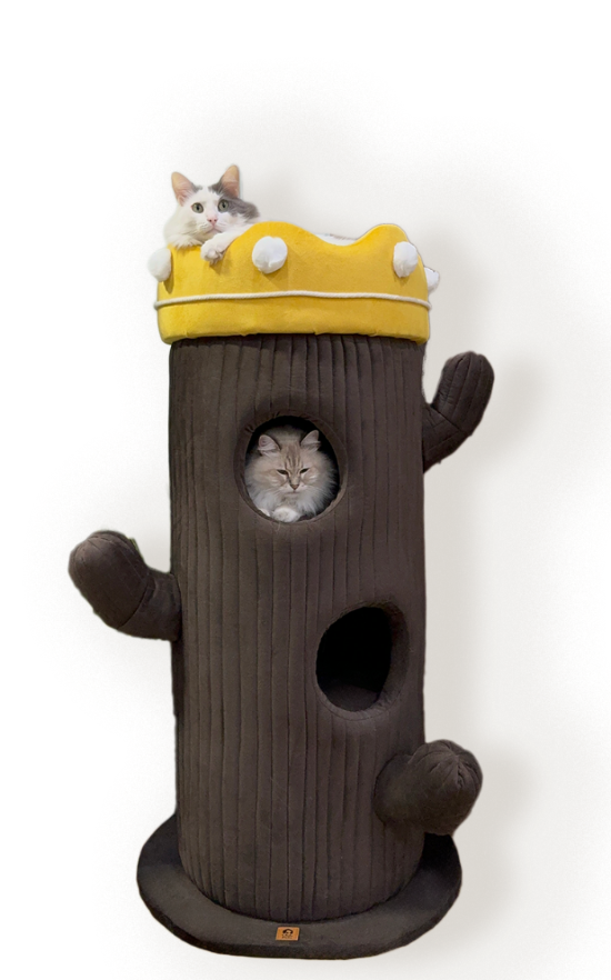 La Maxi Torre Real es mucho más que un rascador o mueble: es el castillo de ensueño que todo gato merece. Con un diseño creativo inspirado en un cactus coronado, esta torre ofrece confort, altura, refugio y diversión en un solo lugar.