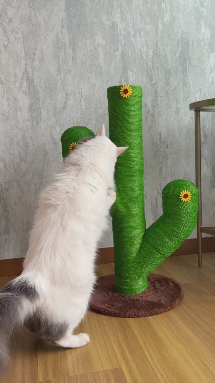 El rascador ideal para tu gato en un tamaño más compacto. Con su exclusivo diseño en forma de cactus, este accesorio no solo ofrece diversión y bienestar a tu mascota, sino que también complementa la decoración de tu hogar.